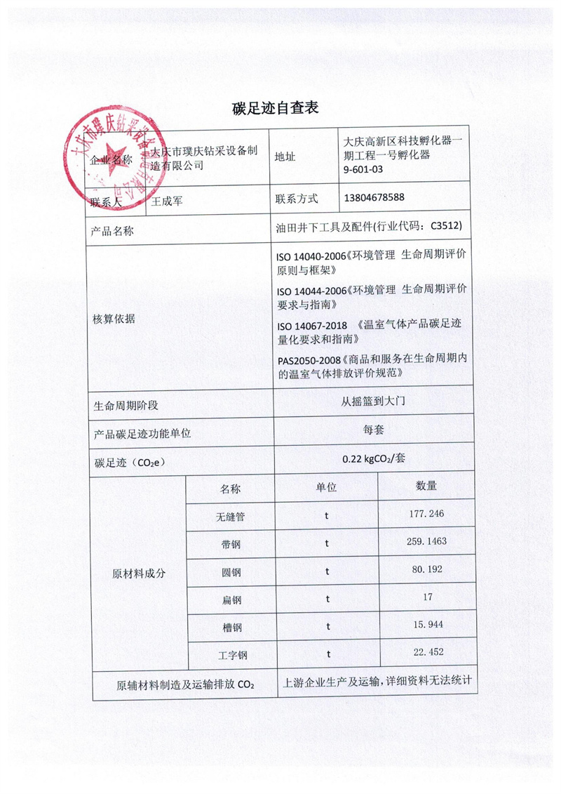 碳足迹自查表
